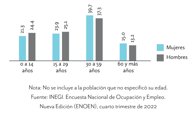 En este sentido, se sabe que el 63.6% de la población ocupada en México carece de acceso directo a la seguridad social (CONEVAL, 2023). Si observamos la información por sexo, del total de mujeres ocupadas, menos de la mitad de ellas tuvo acceso directo a la seguridad social (poco más de 10 millones).